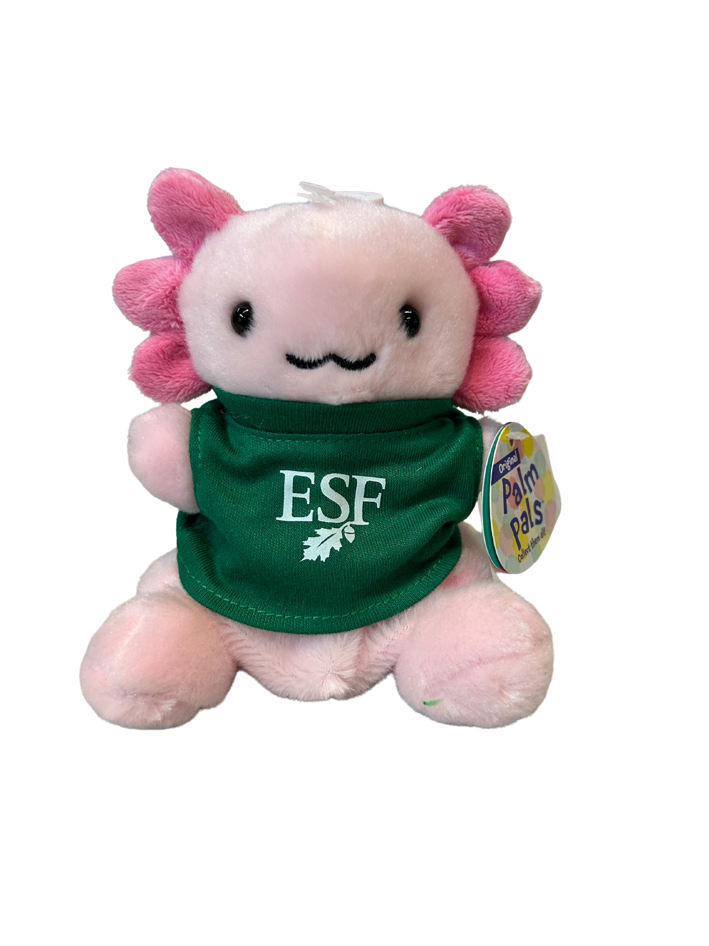 Cute, 6" seated animals with custom printed ESF green t-shirt. Beanbag and poly stuffing.