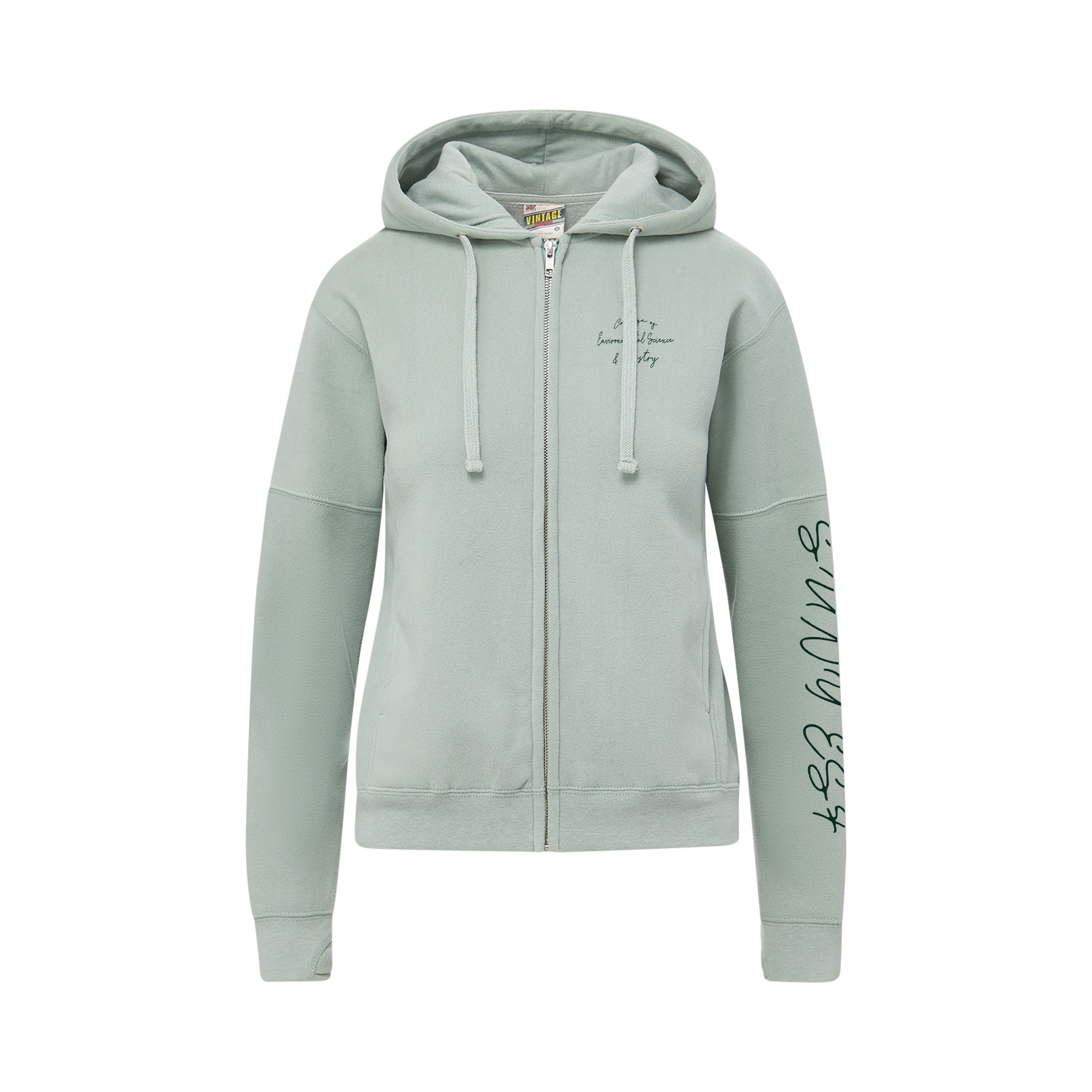 Elevate your campus style with this premium greenstone hoodie, featuring SUNY ESF embroidered in elegant cursive script along the left sleeve and chest. Perfect for showing your college pride while staying warm and comfortable, this versatile piece transitions seamlessly from classroom to casual outings. The sophisticated cursive design sets it apart from standard apparel, making it a standout choice for students and alumni alike. Ideal for layering or wearing solo, this hoodie combines quality craftsmanship with timeless appeal.